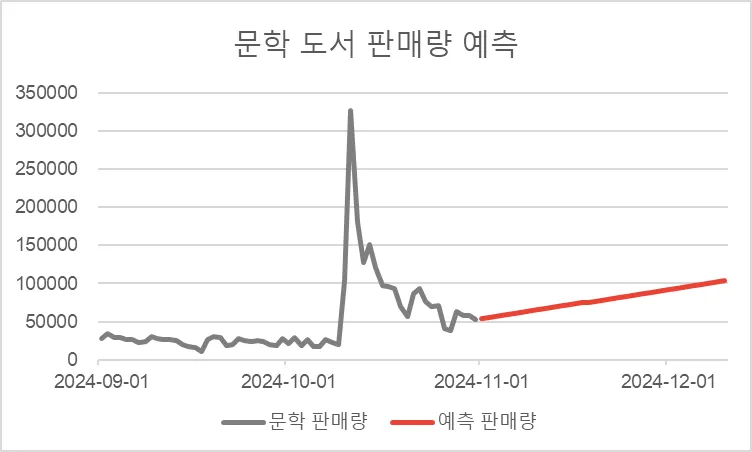 저희는 노벨문학상의 파급력을 집중적으로 분석하기 위해 9월과 10월 판매 데이터로만 예측을 진행했습니다.