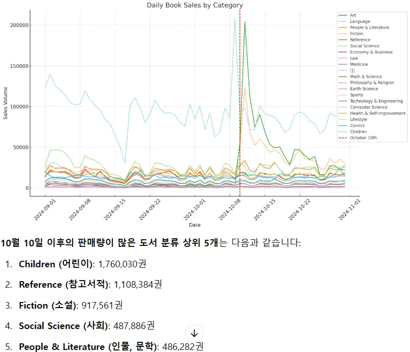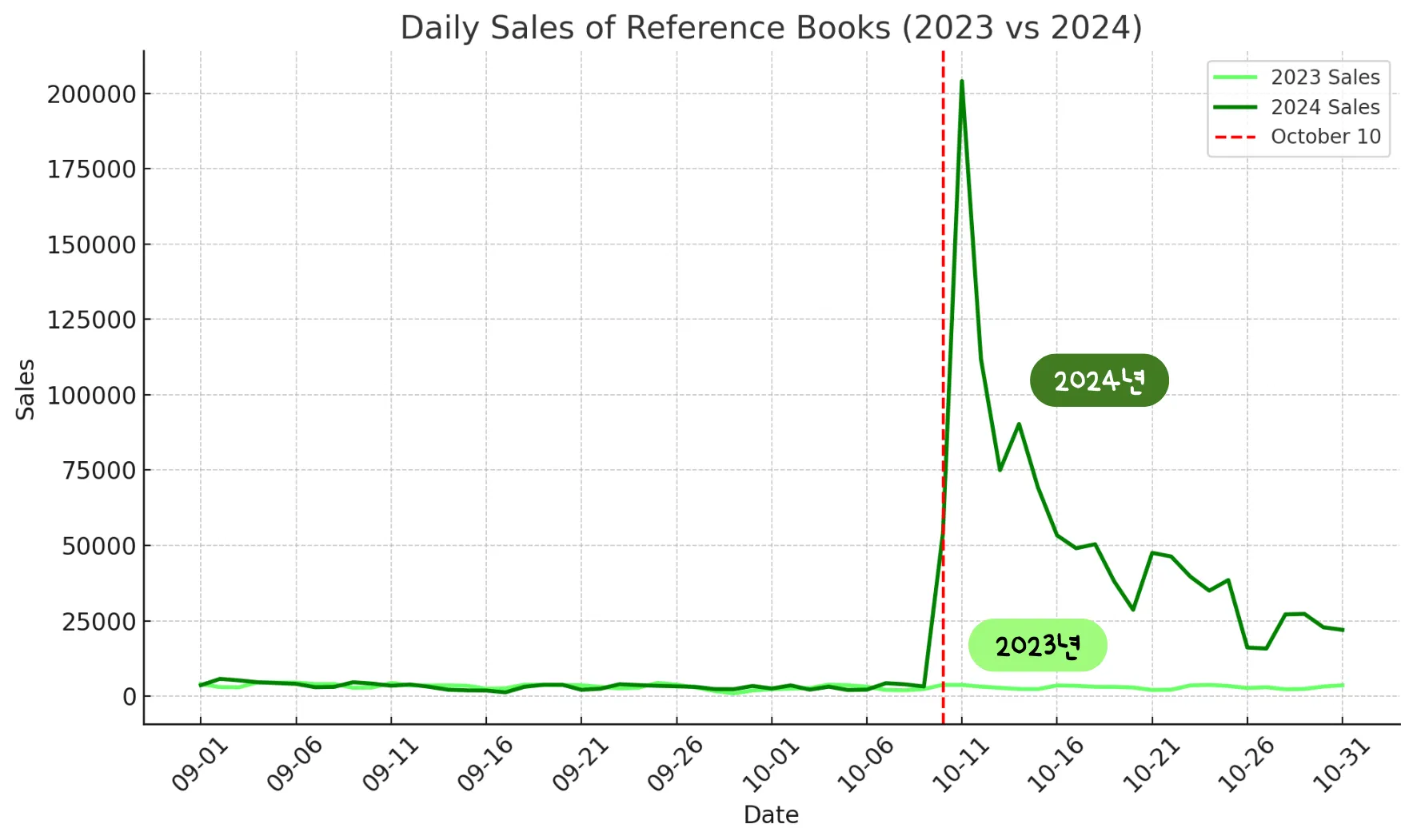 “한강 작가 노벨문학상 수상 후, 판매량 증가율 1위 카테고리는 ‘참고서적’”이라는 결과를 재차 검증