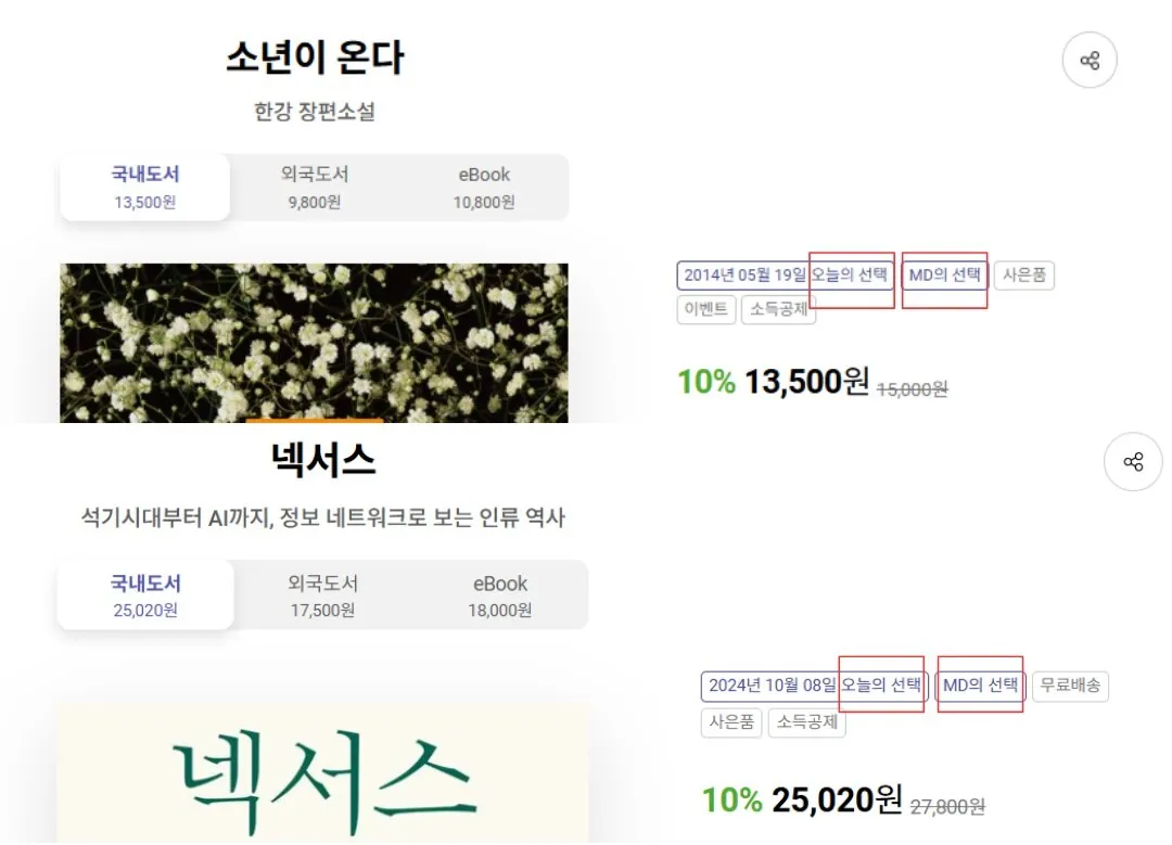 베스트 또는 추천 도서 카테고리로 분류되고 있음을 알 수 있었습니다.