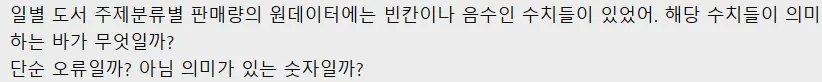 하지만 데이터가 빈칸이거나 음수로 나타나는 이상치(異常點)가 발견됐습니다.