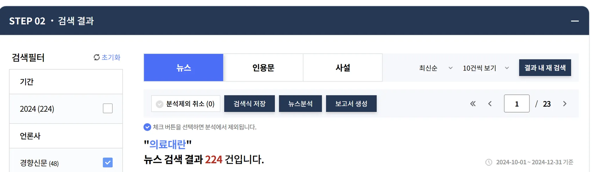 저희는 한국PR협회의 올해의 소통 키워드 2위 ‘의료대란’을 입력했어요.