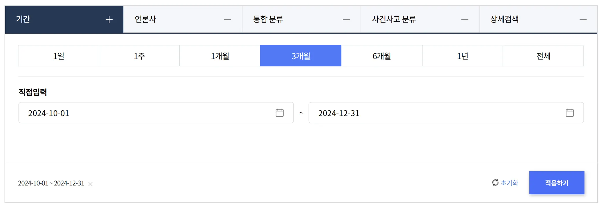 저희는 2024년 4분기 트렌드 파악을 위해, 기간은 ‘3개월’로 설정했어요.
