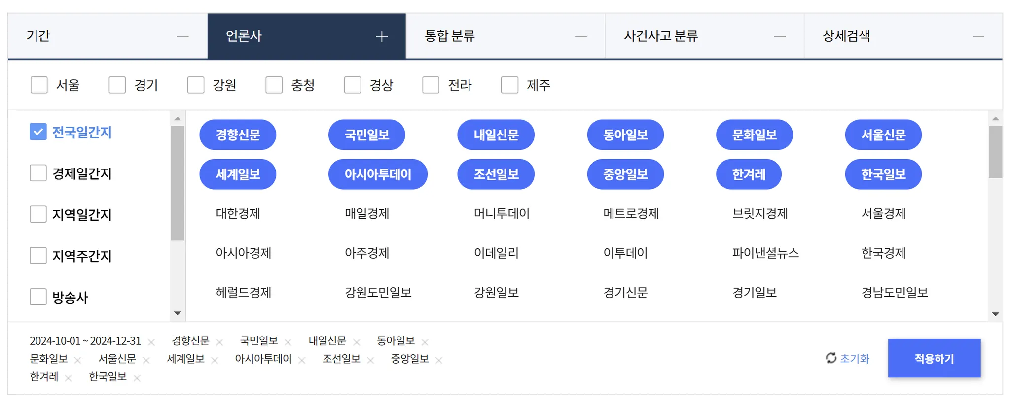 국내 54개 언론사 중 원하는 매체의 기사만을 필터링할 수 있어요.
